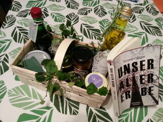 Zum Abschluss erhielt ich von Frau Heil noch einen schön gestalteten Korb mit leckerer, selbstgemachter Mirabellen-Marmelade, Kräutersalz, Olivenöl mit Rosmarin sowie anderen Köstlichkeiten. Für mich besonders spannend: Ein Glas mit Löwenzahnblüten-Köpfen als Kapern-Ersatz.